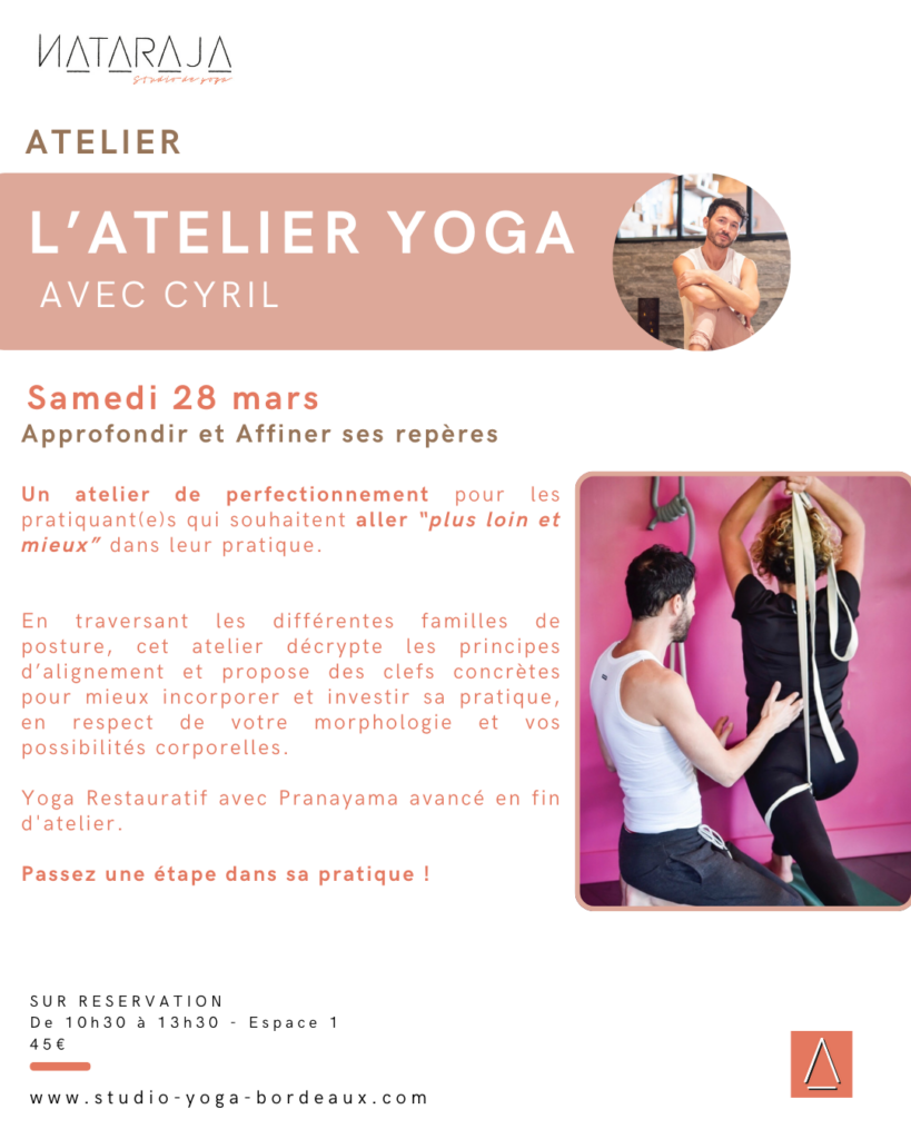studio Nataraja vous propose régulièrement des ateliers thématiques et des stages pour approfondir votre pratique du yoga ou découvrir de nouvelles disciplines.